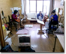 挿し絵と音玉楽譜も展示してギターの魅力を伝えて